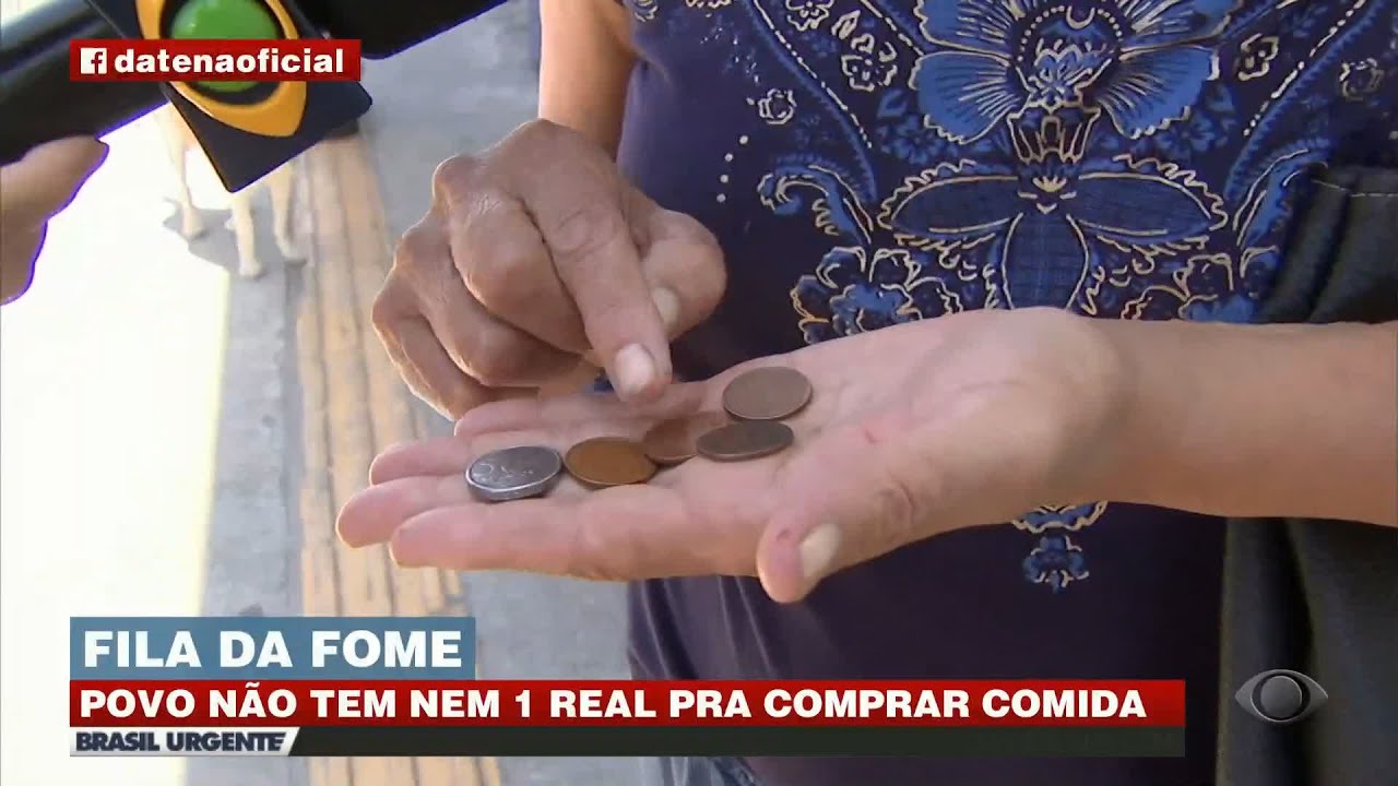 Desempregados e aposentados tentam juntar um real para comprar o almoço.